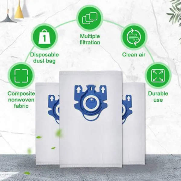[Flera Kompatibiliteter] Kompatibel med Classic C1, Complete C1, Complete C2, Complete C3, S227/S240, S270/S280, S400, S2000, S5000 och S8000-seriens cylinderdammsugare, filter, luftrenare. [Brett tillämpningsområde] Passar för S2110, S2111, S2120, S2121, S2130, S2131, S2180, S2181, S300I, S400, S400I, S401I, S402I, S404I, S408I, S410I, S411I, S412I, S414I, S420I, S4212P, S4212T, S421I, S422I, S424I, S426I, S428I, S434I, S436I, S438I, S5481, S5510, S5980, S600, S612, S644, S646, S648, S658, S812, S826, S828, S8320, S834, S8340, S836, S838, S844, S846 GN-påsar [Bra kvalitet] Lätt att byta ut, dammsugarpåsar ger nio lager av filtrering. Maximal effektivitet under låga effektförhållanden; dammsugarpåsar färgkodad självlåsande krage för minimal dammförlust. [Högkvalitativa material] påsar tillverkade av högkvalitativt miljövänligt material non-woven tyg, hög hållfasthet och föroreningsfritt. Tjockt trelagers non-woven tyg, effektiv dammuppsamling. Ersättning för AirClean dammsugarpåsar och AirClean filter är gjorda med en flerskiktskonstruktion som hjälper till att minska 99,9 % av fina partiklar från att åter komma ut i luften. [Effektivt dammtät] Den trelagers förtjockningsdesignen av dammpåsen som använder 3D-teknik kan effektivt förhindra att damm flyger. Automatisk stängningsmekanism som automatiskt stänger påsen när dammsugaren öppnas, vilket innebär att du inte utsätts för ohygienisk smuts. Dammpåsen håller ditt hem rent och hygieniskt. Färg: Som visas Material: non-woven tyg Storlek: 28 x 18cm Paketets innehåll: 10 x dammpåsar 2 set x filterbomull Endast ovanstående paketinnehåll, andra produkter ingår inte. Obs: Ljus och olika skärmar kan göra att färgen på föremålet på bilden skiljer sig lite från den verkliga varan. Det tillåtna mätfelet är +/- 1-3 cm.