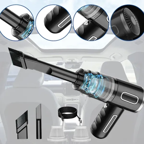 Håll din bil och ditt hem skinande rena med vår sladdlösa smarta dammsugare, designad för enkel och snabb borttagning av smuts och damm.