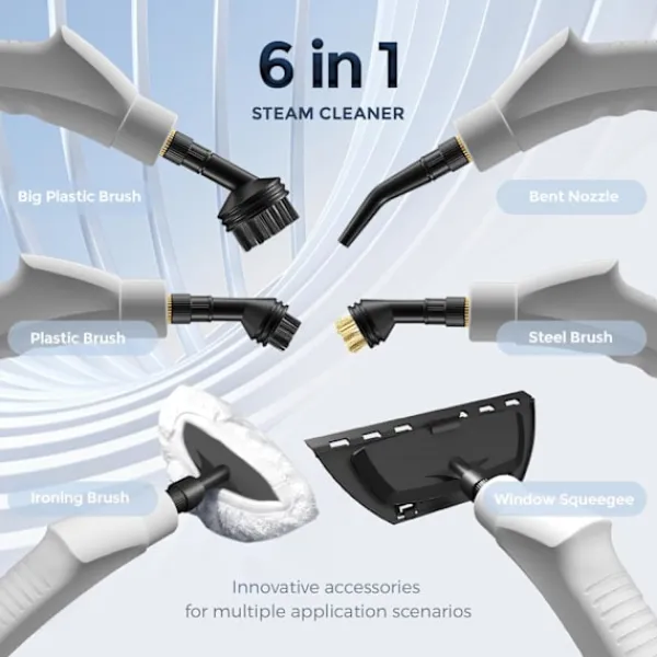 effektivitet. [6-Hastighets Touch Justerbar Knapp] Den multifunktionella ångrengöraren är utrustad med 6 justerbara växlar. Klicka bara på knappen ”+ ” eller ”- ”, kan du justera ångutloppet och fuktigheten enligt deras rengöringsbehov, samtidigt kommer skärmen