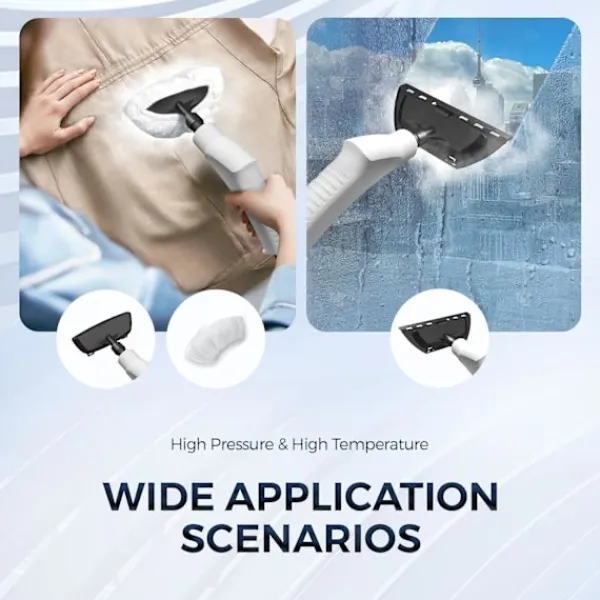 och fläckar från ett brett utbud av ytor, vilket sparar tid och förbättrar effektiviteten! Dessutom är temperaturen högre ju närmare ångpistolmunstycket. Behöver uppmärksamhet: Ångrengöraren har inte en avtryckare på
