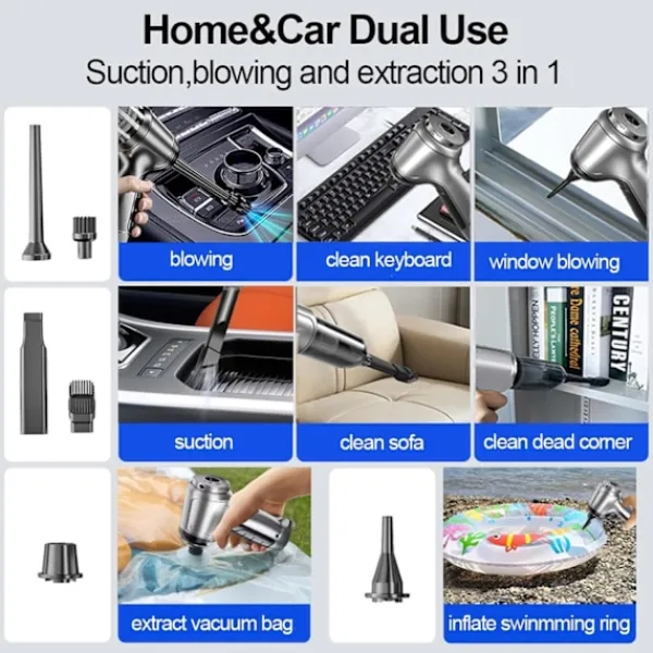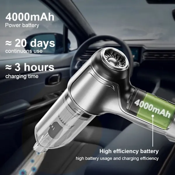 Bekvämlighet: Bil dammsugare kan användas när som helst, var som helst utan att behöva åka till en specialiserad biltvätt eller använda hushållsrengöringsverktyg. Effektivitet: Bil dammsugare har vanligtvis ett starkt sug och kan snabbt ta bort damm och skräp från bilen på kort tid. Spara tid och undvik tråkiga rengöringsprocesser. Multifunktionell: De flesta bil dammsugare är utrustade med olika typer av munstycken och tillbehör för att möta behoven att rengöra olika områden som mattor, säten, bagageutrymmen etc. Lätt och enkel att använda: Bil dammsugare är små i storlek och har särskilt små sugmunstycken. Det är också lättare att rengöra sömnads- och trampdynor på trånga utrymmen.