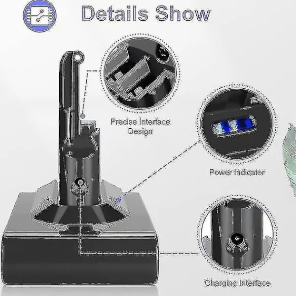 Kompatibel med: för Dyson V8-serien, för Dyson V8 Fluffy, för Dyson V8 Absolute, för Dyson SV10-batterier.