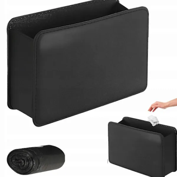 Bilcuvetten har 2 starka krokar som gör att du enkelt kan skjuta in klämman i kanten av din bildörr, baksäte eller mittkonsol. Bilsoptunnor är praktiska för förvaring av papper och nagelband. Bilbehållaren kan också användas som förvaringsbehållare för paraplyer, flaskor, vattenkoppar, näsdukar, leksaker, snacks och andra små nödvändigheter, vilket är bekvämt och praktiskt. Specifikation: