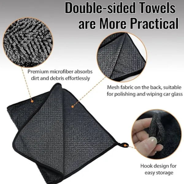 Premium MikrofiberUtrustad med högkvalitativa krokformade mikrofibertrådar per tum, dessa glansiga rengöringsdukar finns i två olika längder på varje sida. Ena sidan tar enkelt bort smuts och rester, medan den andra sidan, ett meshtyg, är idealisk för polering och skapar en streckfri finish – perfekt som en biltorkduk för att torka glas.