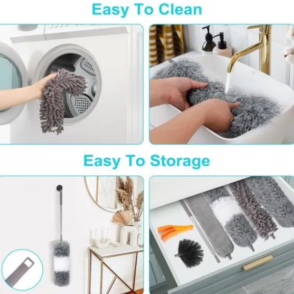 *Lättförvaring: Handtaget är utformat med upphängningshål för förvaring av dammdukar och upphängning på väggen. Den är lätt att förvara och kan tas bort när som helst för att städa rummet.