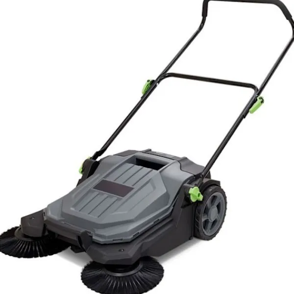Svepbredd: 650 mm / 25,6 tum >Produktdimensioner: 1110 x 650 x 1060 mm / 43,7 x 25,6 x 41,7 tum >Kapacitet för skräpkorg: 18,9 L / 5 gallon >Nettovikt: 9,1 kg / 20 lb >Huvudmaterial: kolstål + PP >Färg: grå + svart >Artikelmodellnummer: S13-001A >Körläge: Manuell drivning med fot.