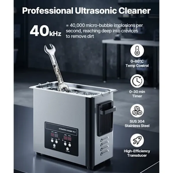 Artikelnummer: TH-30ATP| Frekvens: 40 kHz| Kapacitet: 6 L| Timer: 0–30 min| Temperaturområde: 0–80 °C| Produktvikt: 8,16 lb/3,7 kg| Produktdimensioner: 380 x 180 x 295 mm