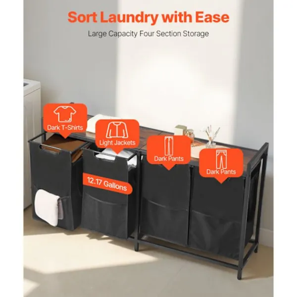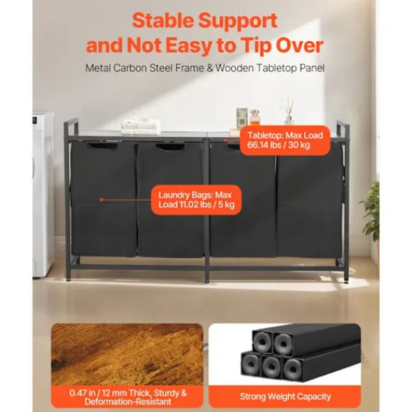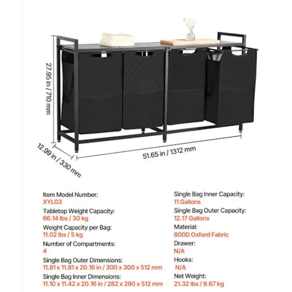 Denna DUOKU tvättkorg, modell XYL03, har 4 fack och en total kapacitet på 48,68 gallons. Tillverkad av Oxford 600D tyg och kolstål, är den robust och hållbar. Idealisk för att sortera dina kläder, erbjuder den enkel åtkomst genom sina glidande påsar och en överdel för praktisk förvaring.