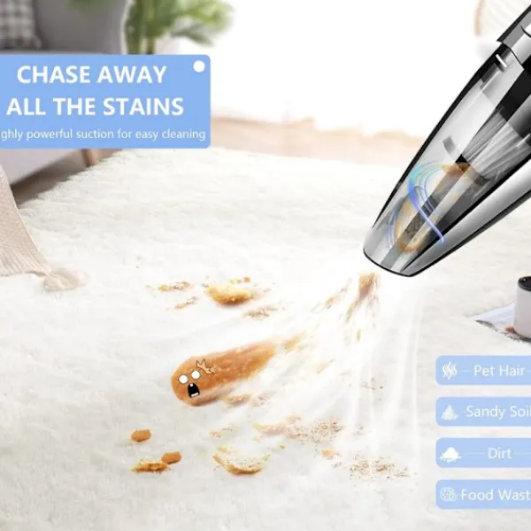 2200mAh Li-ion Batteri och Snabbladdning: 2200mAh Li-ion batteriet och handdammsugarens batteri tar vanligtvis bara 3-4 timmar att ladda fullt, och handdammsugaren kan användas i cirka 25 till 30 minuter.