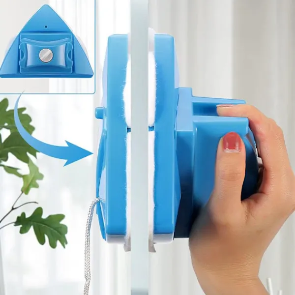 Dubbelsidig magnetisk fönsterputsare: Den dubbelsidiga magnetiska fönsterputsaren har en kraftfull intern magnet som låser ihop båda sidorna av putsaren, vilket gör att du kan djuprengöra var du än är. När du flyttar den ena sidan följer den andra med.
