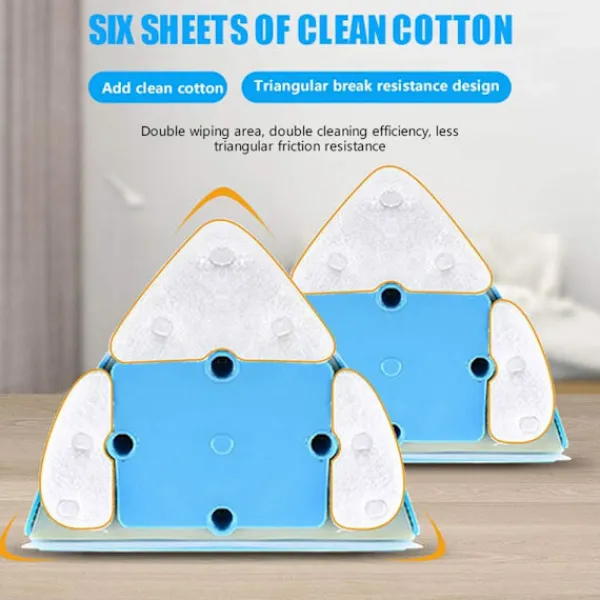 Mer triangulär design för att underlätta arbetet: Med den triangulära designen (mindre friktionsmotstånd) är rotationen flexibel så att dina händer inte blir ömma och arbetsbesparande. Denna fönsterputsare kan torka smala områden på fönster och rengöra utan döda vinklar, vilket gör att du kan uppnå en mer grundlig rengöring.