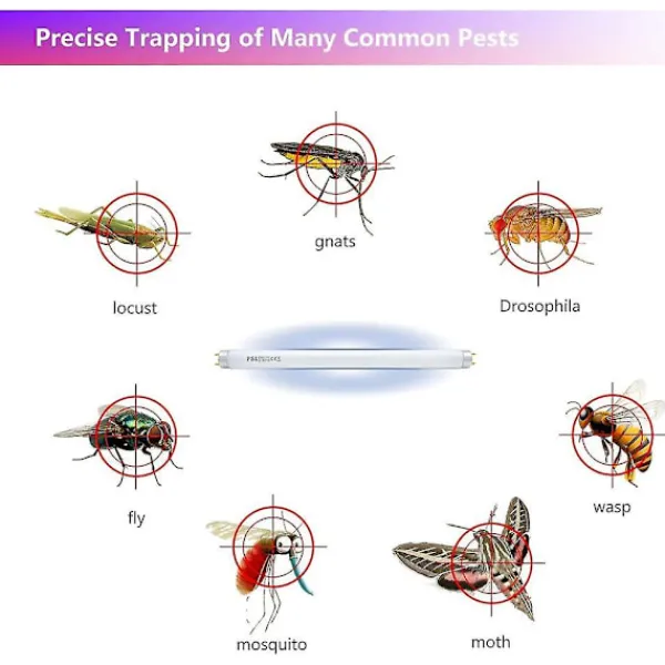 FunktionDen huvudsakliga våglängden är 365 nm – används för att locka till sig små skadedjur som husflugor, myggor, nattfjärilar etc., med god fångsteffekt och energibesparing.