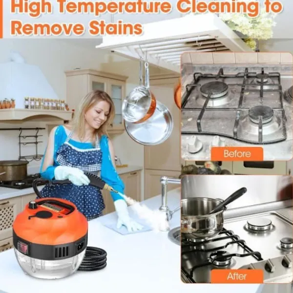 2500W Portabel ångrengörare – Högtrycksånga, 2000ml tank, justerbar ångtemperatur, med 3 borsthuvuden