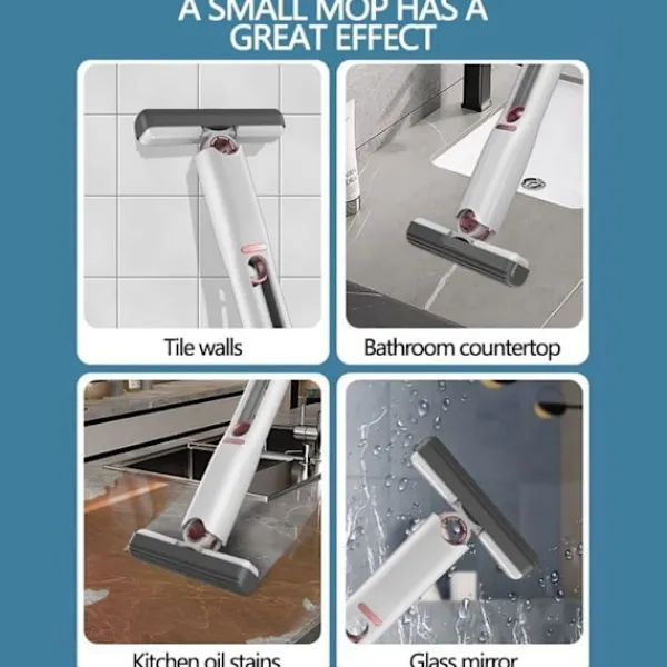 Portabel Mini Mopp Mini Mopp Snabb Rengöring Stark Absorptionsförmåga Våt och Torr Användning Mini Liten Mopp för Kök Sovrum Badrum Bord Bil Fönster Rengöring Funktioner: Mycket absorberande mjukt svamphuvud. 180° justerbar mini mopp för att rengöra varje hörn. Integrerad rengöring och uttorkning, vilket gör den bekväm och ekonomisk. Vertikal design för enkel förvaring och stilfullt utseende. Lämplig för alla typer av bordsskivor, glas, golv, kök, vardagsrum och badrum. Produktbeskrivning: Produktinnehåll 1 × Mopp 1 × Bomullshuvud