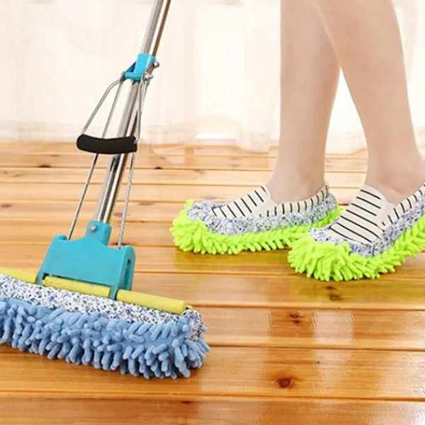 Detta är en bra hushållsarbetare för dig. Denna mopp sko kommer göra en stor tidsbesparing för dig, eftersom du kommer damma golvet medan du går när du använder den. Den är flexibel, storleken passar alla.
