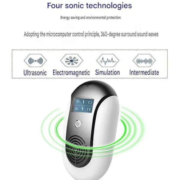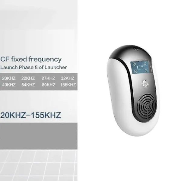 Avvisaren har inbyggda smarta skadedjursbekämpningschip som ger intelligent frekvens mellan 20-158KHz, för att hålla skadedjur, möss och insekter borta från din plats.