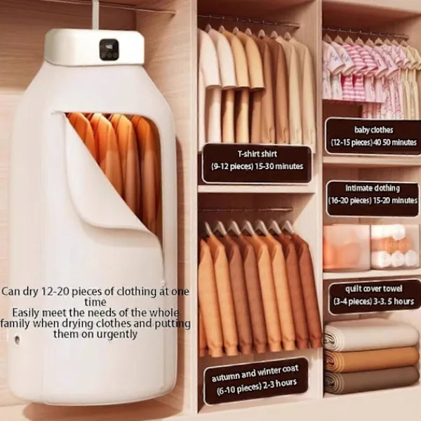 1. Klädtork med snabbtorkande teknik: Klädtorkar är designade för att revolutionera din tvättrutin. Dess kapacitet är imponerande och rymmer upp till 9–12 klädesplagg samtidigt. Den har ett unikt torksystem som använder en kombination av värme och luftflöde för att avlägsna fukt från kläder, vilket gör att de torkar snabbare på upp till 20 minuter istället för lufttorkning eller hängning.
