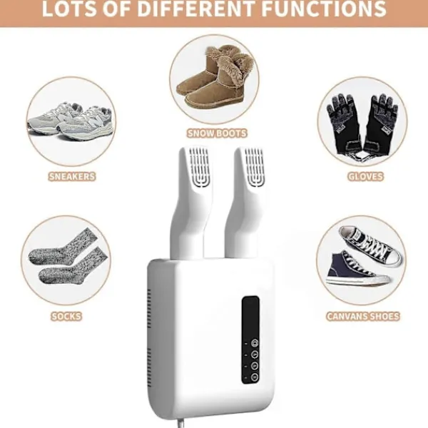 5—Breda Användningsområden: Vår skotork är lämplig för torkning av skor, stövlar, handskar, skidpjäxor, sneakers, sneakers och jaktkängor och utomhusutrustning. Håll alla dina tillhörigheter torra och bekväma med vår mångsidiga, högeffektiva torktumlare. Observera: Blötlägg inte produkten i vatten eller någon annan vätska för att undvika skador på produkten. Lita på våra högkvalitativa skotorkar för att hålla dina skor snygga!