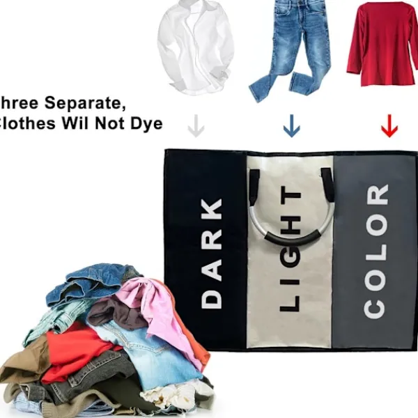 - Tydlig sortering: Tre märkta fack för enkel separering av tvätten.