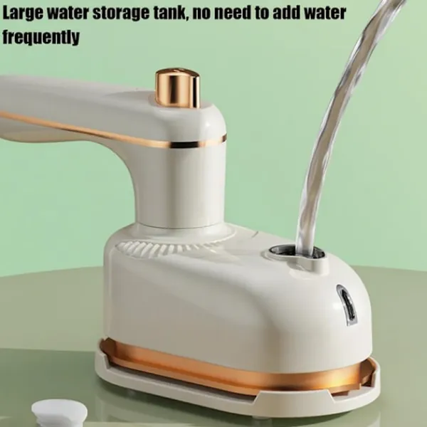 1, Resevänlig, Högkvalitativ Ångare: Designad för användning på resande fot, denna klädångare är kompakt, lätt och platsbesparande – perfekt för resor. Dess icke-avtagbara, läckagesäkra vattentank säkerställer inga kladdiga spill, medan dess effektiva prestanda eliminerar rynkor utan att lämna vattenfläckar. En pålitlig följeslagare för resor och utflykter, den håller kläderna snygga vart du än går.