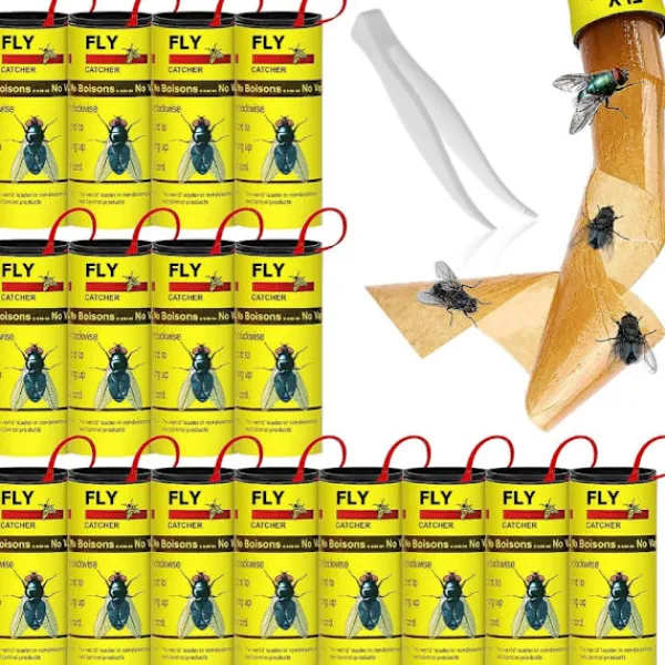 Effektiv flugfälla: En klibbig flugfälla drar till sig flugor och andra insekter som helt enkelt klibbar fast på flugpappersrullen, vilket effektivt löser problemet med inomhusflugor.