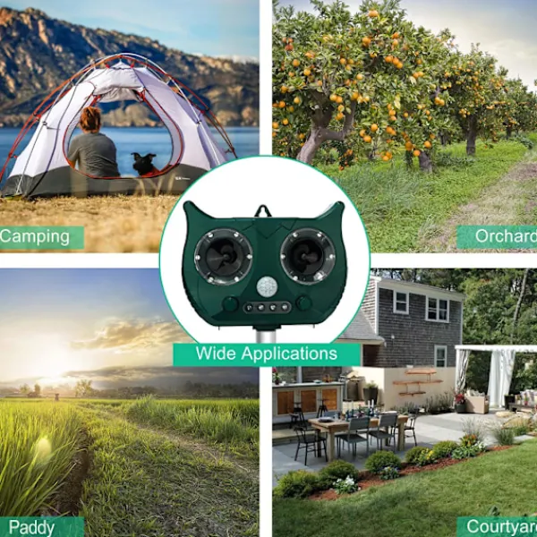 Bekämpa skadedjur med denna ultraljudavskräckare med PIR-sensor som upptäcker objekt som rör sig och som samtidigt avger ett 120 dB ljud med ultraljudsvågor. Dess blinkande ljus håller borta insekter och andra djur som du vill undvika i trädgården. Ljudet kan endast höras av djur, så du slipper störas av ultraljudsfrekvensen.