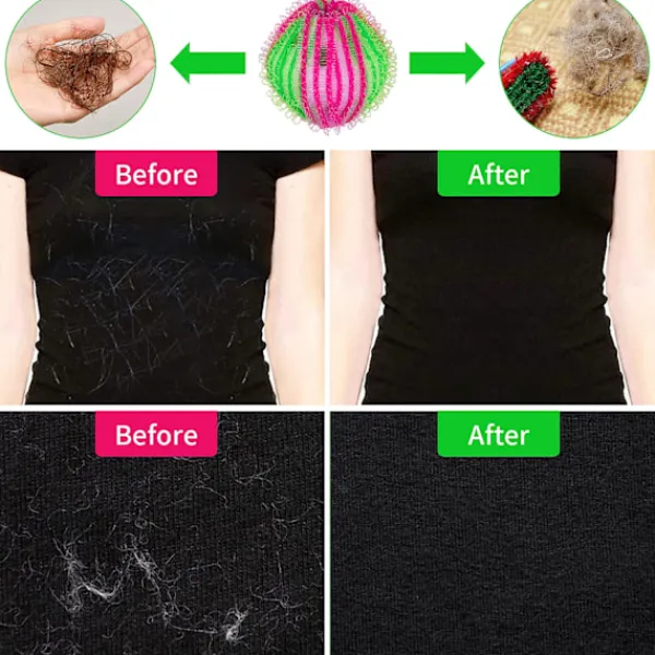 Skonsamt mot kläderna: Bollarna skrubbar effektivt bort hår och ludd utan att skada plaggen. När luddbollarna är fulla med smuts, skölj dem helt enkelt under rinnande vatten och låt dem lufttorka för att sedan kunna använda igen