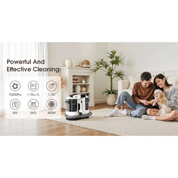 - 15 000Pa sugkraft som avlägsnar kaffefläckar, vin, lera och husdjursolyckor på djupet