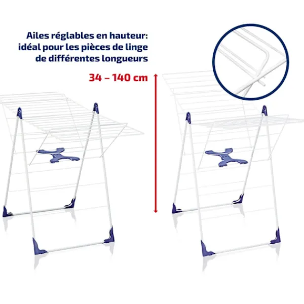 Njut av en mångsidig torklösning med Leifheit Classic 250 Flex fristående torktumlare. Dess 25 meter torktråd och dess två höjdjusterbara vingar erbjuder optimal komfort för alla dina typer av tvätt. Det integrerade nätet är perfekt för ömtåliga föremål, medan det enkla öppna och stänga systemet förenklar användningen. Designad för att motstå dåligt väder, den är idealisk för inomhus- och utomhusbruk.