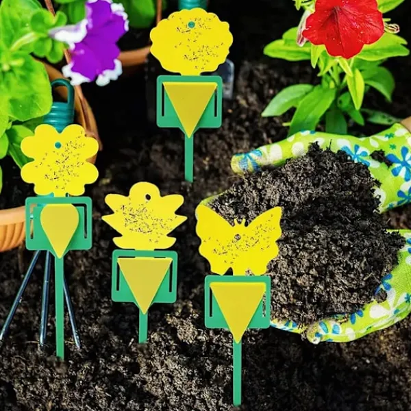 Skaka plantan lätt ibland för att få insekterna att flyga på klistret.