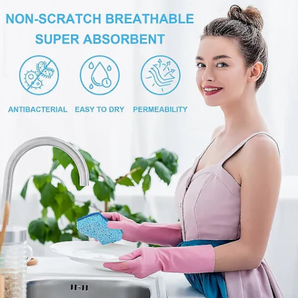 Repfri u0026 MångsidigVår disksvamp kan skrubba dina diskar, köksredskap och till och med känsliga ytor utan att oroa dig för oönskade repor. Denna miljövänliga kökssvamp kan hjälpa dig att enkelt torka bort smuts, partiklar, smuts, fett, etc.