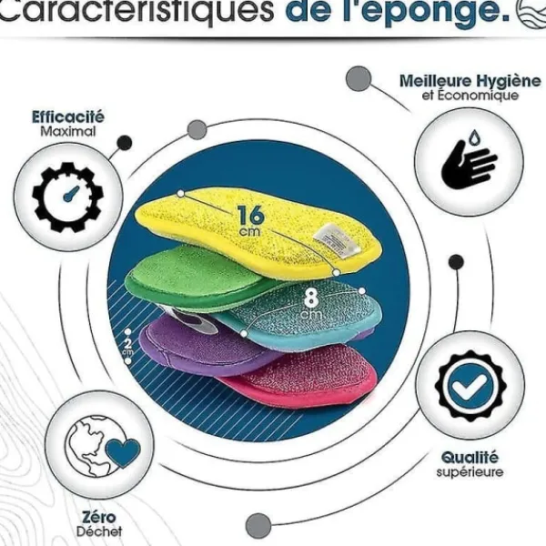minskningen av förorenande avfall, genom att sluta använda engångssvampar vars mikroplast rinner ut i haven genom avloppsvatten. Våra produkter är en del av ett ekologiskt tillvägagångssätt.[ Bättre hygien och ekonomisk ] Maskintvättbar och återanvändbar för en