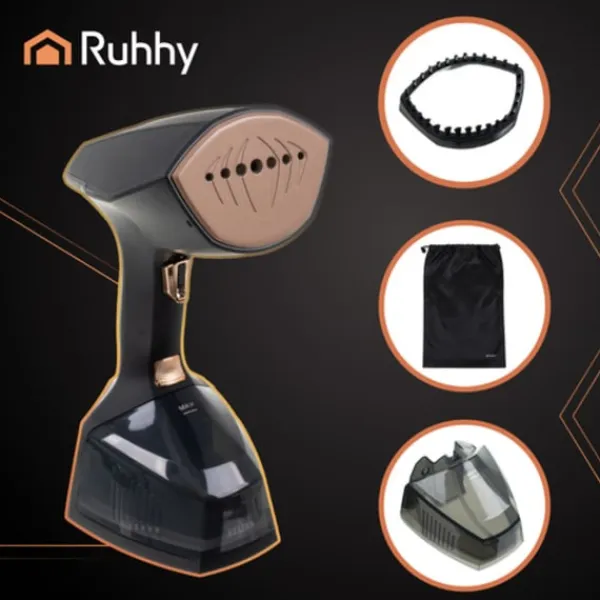Ruhhy 2000W klädångare erbjuder snabb skrynkelborttagning med sin kraftfulla ångeffekt, vilket gör den idealisk för att fräscha upp kläder, klädsel och mer. Dess 360 ml tank säkerställer längre användning utan frekventa påfyllningar.