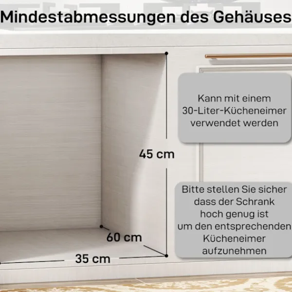 - Håll ditt kök snyggt med en dold design som döljer avfall.
