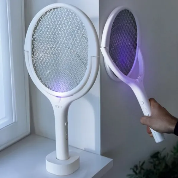 Denna elektriska myggdödare är utformad för att effektivt bekämpa myggor och andra flygande insekter, med en 90-graders roterande funktion som gör det lätt att rikta in och slå till mot insekter. Den dubbla funktionen som myggfälla med lampa tillhandahåller en ytterligare nivå av skydd, och gör det möjligt att njuta av en ostörd natts sömn. Den medföljande basen och väggfästet gör det enkelt att förvara enheten när den inte används. Med dess kraftfulla och laddningsbara batteri är denna myggdödare alltid redo att användas, oavsett var du befinner dig.