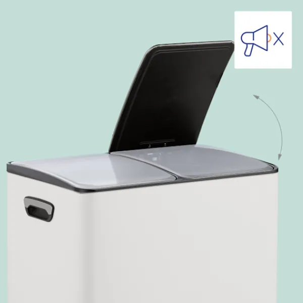 Förbättra din avfallshantering med denna kökskärl med två fack, designad för hygienisk avfallshantering och effektiv sortering av återvinningsbart material och allmänt avfall.
