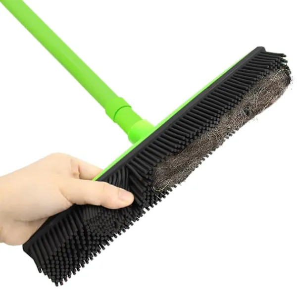 Denna unika sopborste har ett teleskopskaft som gör att den passar alla familjemedlemmar. Själv borsten är tillverkad i gummi för att den effektivt ska kunna fungera mot alla typer av smuts. Den fångar effektivt upp exempelvis hår, damm och annan smuts från golv och mattor. Materialet gör även att den går utmärkt att använda utomhus eller i ditt garage. På ena sidan av borsten sitter en skärm som du kan använda för att samla upp vätska. Borsten rengörs enkelt med vatten.