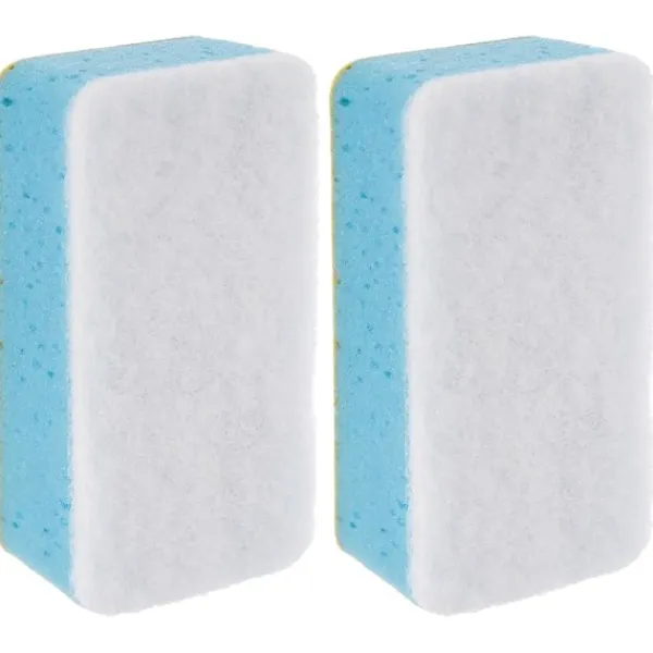 Set med 2 kökssvampar designade för rengöring av disk och andra köksytor. Gemssidan är idealisk för rengöring av speglar och glas.