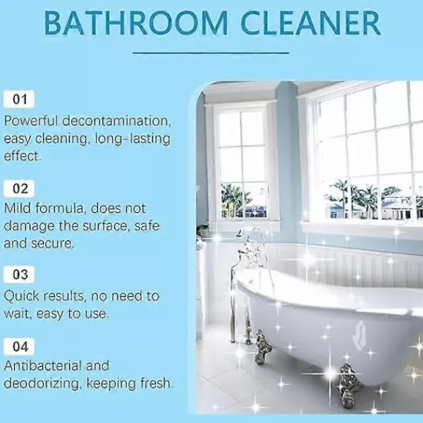 ProduktbeskrivningSpecifikation:Nettoinnehåll: 300mlLämplig för: Badkar, Speglar, Kakel, Kranar och MerPaket Innehåller:1st * Multifunktionell Rengöringsspray för Badrum