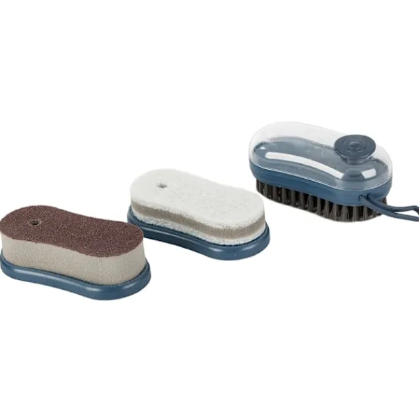 Tre tips ingår som är bra för rengöring av grytor, skor eller klädsel.