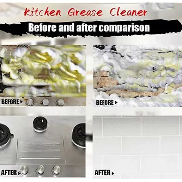 Produkt Kök FettrengöringSkummande rengöringsmedel för kraftiga oljefläckar, allrengöringsmedel bubbelrengöring kök djuprengöringsspray, allrengöringsmedel sköljningsfri rengöringsspray, envis fett- och smutsborttagare bubbelspray.BubbelrengöringKök Bubbelspray använder skumexpansionsteknik för att hjälpa till att tränga in och ta bort envis fett och fläckar från alla köksartiklar i 2 steg. Bara spraya och skölj, vilket gör sakerna fräscha och nya. Den polerar också dina föremål och skyddar dem mot missfärgning och sprickbildning från hög värme i upp till 1 månad. Dags att ha det renaste köket utan ansträngning!Kök FettrengöringssprayKök Fettrengöringsspray Tar effektivt bort fett och lämnar en icke-fet, matt finish som förhindrar blekning, missfärgning och sönderrivning i 3 månader.AllrengöringsmedelBubbelrengöringsmedel för flera ändamål. Glansförlusten försvinner omedelbart och lämnar glansen. 100 % skadefri, säker att använda på rostfritt stål och kromytor.Används i stor utsträckningLämplig för tyger, canvas, läder, PVC, glas, vinyl, plast, gummi, metaller, gelcoats och mer. Funktioner:Tränger in och tar bort envis fett eller fläckar utan ansträngning med vår speciella skumexpansionsteknik.I bara 2 steg: Rengöring är enkelt och problemfritt, bara spraya och skölj, det renaste och snyggaste köket är nära till hands.Högvärmeskyddande beläggning: Polera föremål under rengöring för att skydda föremål mot missfärgning och sprickbildning under hög värme.Används i stor utsträckning: Fungerar på alla typer av köksredskap.Miljövänlig: Ett vattenbaserat rengöringsmedel som omvandlar rengöringslösningen till skumform och kan enkelt rengöras med bara vatten. Också ofarligt för människokroppen.Hur man använder:Spraya direkt på önskat område.Använd en handduk eller svamp för att förbättra borttagningen av fläcken.Skölj bara bort skummet efter rengöring.Specifikation:Nettoinnehåll: 100 mlPaketet innehåller:1 st x Kök Fettrengöring