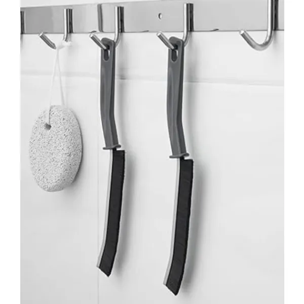 【Ergonomisk design】 Fogrengöringsborsten erbjuder komfort och utmärkt grepp vid skrubbning tack vare dess långvariga borst och ergonomiska handtagsdesign. Den smala rengöringsborsten tar väldigt lite plats och är lättare att förvara tack vare sitt hängande hål.