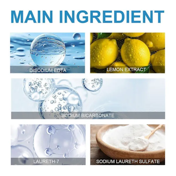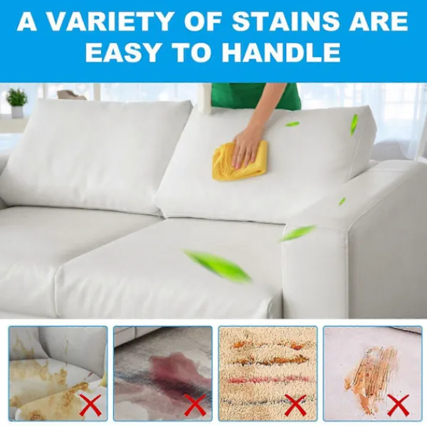 Våra textilrengöringstabletter innehåller citronextrakt, dinatrium-EDTA och natriumbikarbonat. De kan tränga djupt in i tygfibrerna för att noggrant avlägsna smuts, damm etc. På soffans yta för att återställa soffans renhet, kan hålla soffans tyg mjukt och smidigt, förhindra torr sprickbildning och blekning och förlänga soffans livslängd. Användningen är mycket enkel: lägg brustabletten i vatten, vänta tills den löses upp och torka fram och tillbaka med den blandade vätskan på ytan som behöver rengöras. Användningen av skonsamma och säkra ingredienser kommer inte att skada soffans tyg.