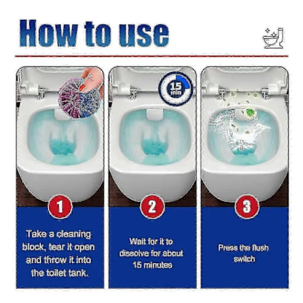 Vårt toalettblock innehåller bakpulver, citronextrakt och enzymer. Det kan bryta ner och ta bort envisa fläckar, smuts och avlagringar från toaletten. Dess kraftfulla rengöringseffekt tränger djupt in i toalettens yta, vilket gör att den ser mycket ren ut och är fri från bakterier och lukter. Användningen är enkel: ta ett rengöringsblock, riv upp det och kasta det i toalettanken; Låt det lösas upp i cirka 15 minuter; Tryck på spolknappen. En kraftfull och effektiv rengöringsprodukt som är utformad för att hålla ditt badrum skinande rent, fritt från smuts och bakterier; Kan användas på en mängd olika ytor, inklusive keramik, keramik och rostfritt stål. Den är utformad för att bryta ner och ta bort hårda fläckar, eliminera lukter och få din toalett att se ut och lukta fräsch och ren; Badrumsrengöringsblock är viktiga för alla som letar efter ett säkert och effektivt sätt att hålla sitt badrum rent och hygieniskt.