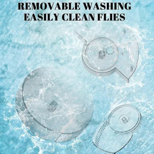 Beskrivning: Fångstprincip: socker vatten eller mjuk mat Brödsmulor placeras i 5 betesstationer på den elektriska flugfångaren; När husflugan festar, sveper de roterande armarna över dem och fångar dem inuti; De flyger in i uppsamlingsbrickan och dör några dagar senare; Dra av botten för att tömma brickan