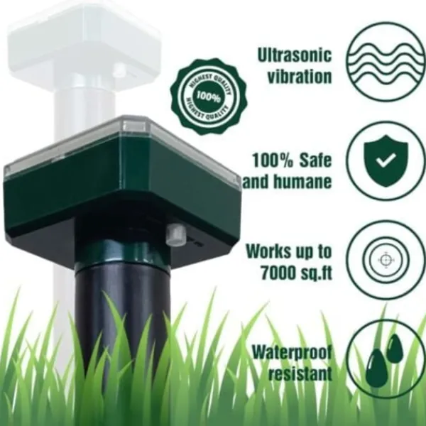 BeskrivningEtt alternativ till mer konventionella produkter för att hålla möss borta från din trädgård utan att skada dem är den solcellsdrivna ultraljudsavskräckaren för mullvadar. Apparatens ljudutsläpp är inte stötande för människor eller husdjur, men de har en avskräckande effekt på svarta djur.