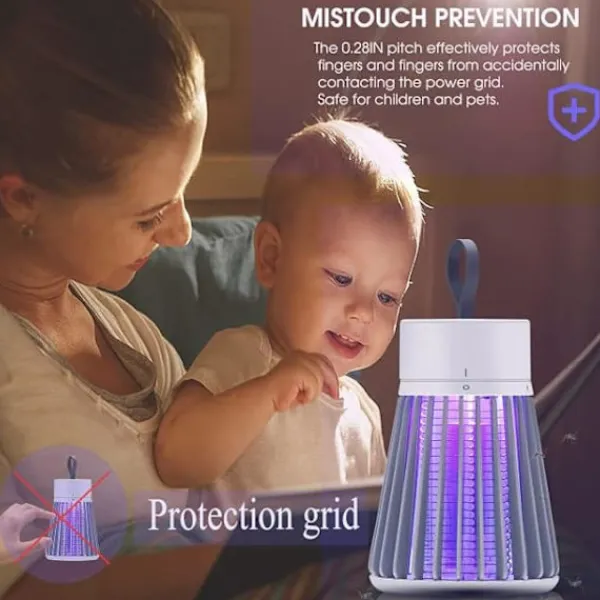 【Inomhus & Utomhus Myggdödare】Utrustad med ett spänningsnät som omedelbart dödar myggor och flugor vid kontakt. Den 360° arbetsradien säkerställer omfattande täckning och skyddar effektivt din familjs livsmiljö från skadedjur.