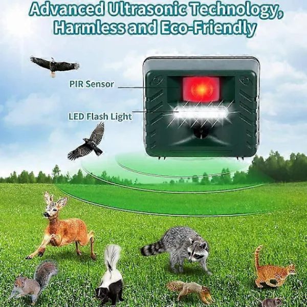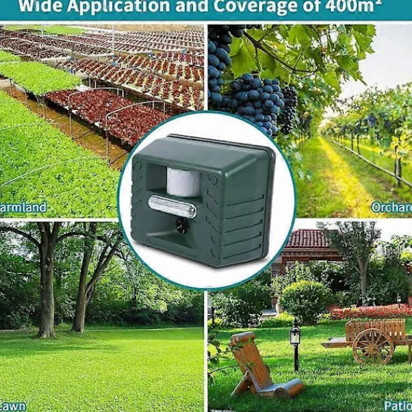 1. Tre lägen: induktionsläge: infraröd induktion av värmeobjekt (rak linje justerbar från 1 till 20 m) avger ultraljudsvågor (fast frekvens), kontinuerligt läge: avger kontinuerligt ultraljudsvågor utan infraröd induktion, skanningsläge: ultraljudsinduktion från låg frekvens till hög frekvens.2. 24-timmarsläge: 24-timmars arbetsläge, dagarbetsläge, nattarbetsläge3. 4 typer av larmljud: 1. Det andra ljudet är sirenljudet, det tredje och fjärde ljudet är örnens skrik. (kan inaktiveras)4. Ultraljudsfrekvens: 16KHZ-25KHZ (justerbar) Effektiv räckvidd: 5 000 kvadratfot (cirka 400 kvadratmeter)5. Paketinnehåll: färgboxförpackning, maskin*1, skruvpåse*1, fjärrkontroll*1, adapter*1