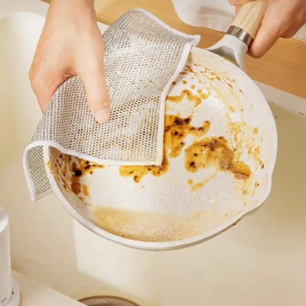 �【Avancerad teknik och säkerhet】 Våra tråddisktrasor är gjorda med hjälp av avancerad vävteknik för diamantgaller, vilket säkerställer hållbarhet och säkerhet för både dina kastruller och händer. De kan lätt sköljas med vatten.