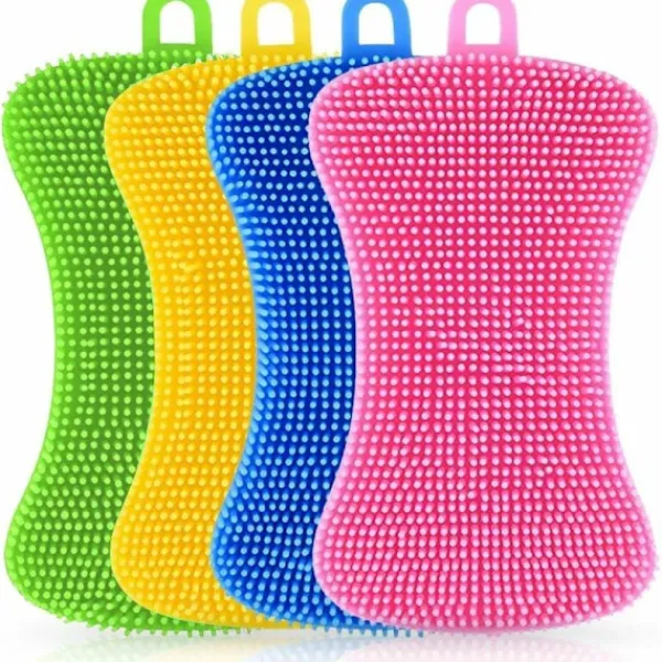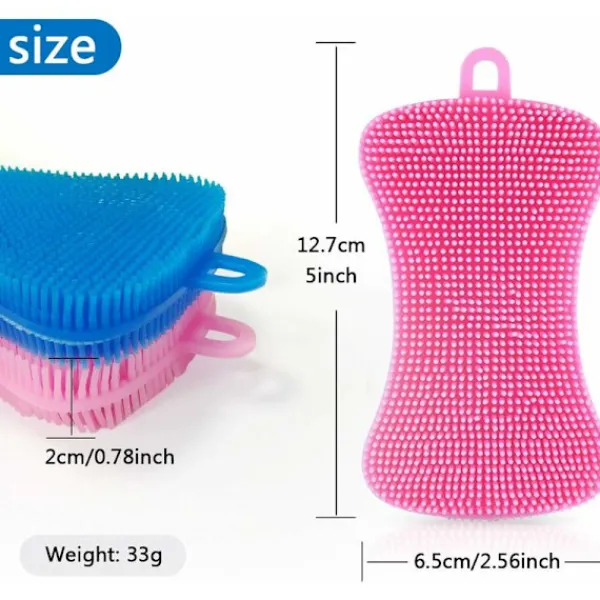 Material: Tillverkad av livsmedelsgodkänd silikon, den är mjuk, giftfri, smaklös, miljövänlig och motståndskraftig mot deformation. Hållbar och säker för långvarig användning. Design Dubbelsidig design: Med unik dubbelsidig design är det mycket enkelt att rengöra diskar, kastruller, kastruller, frukt eller grönsaker. Du kan använda vilken sida som helst. Mer bekvämt och praktiskt. Lätt att förvara: Det finns ett litet hål på toppen av varje silikonsvamp, vilket är lättare att hänga upp efter varje användning, tar inte mycket plats och kan också hjälpa dig att bibehålla kökssvampens användbara livslängd. Flerfunktionell: Den är mycket flexibel och böjbar, så den kan enkelt nå botten av koppar eller andra föremål med stängd mun, vilket hjälper dig att göra ett bra jobb. Dessa silikonsvampar kan inte bara användas för att diska, skölja kastrull eller panna, tvätta frukt och grönsaker, utan kan också användas som grytunderlägg eller underlägg.